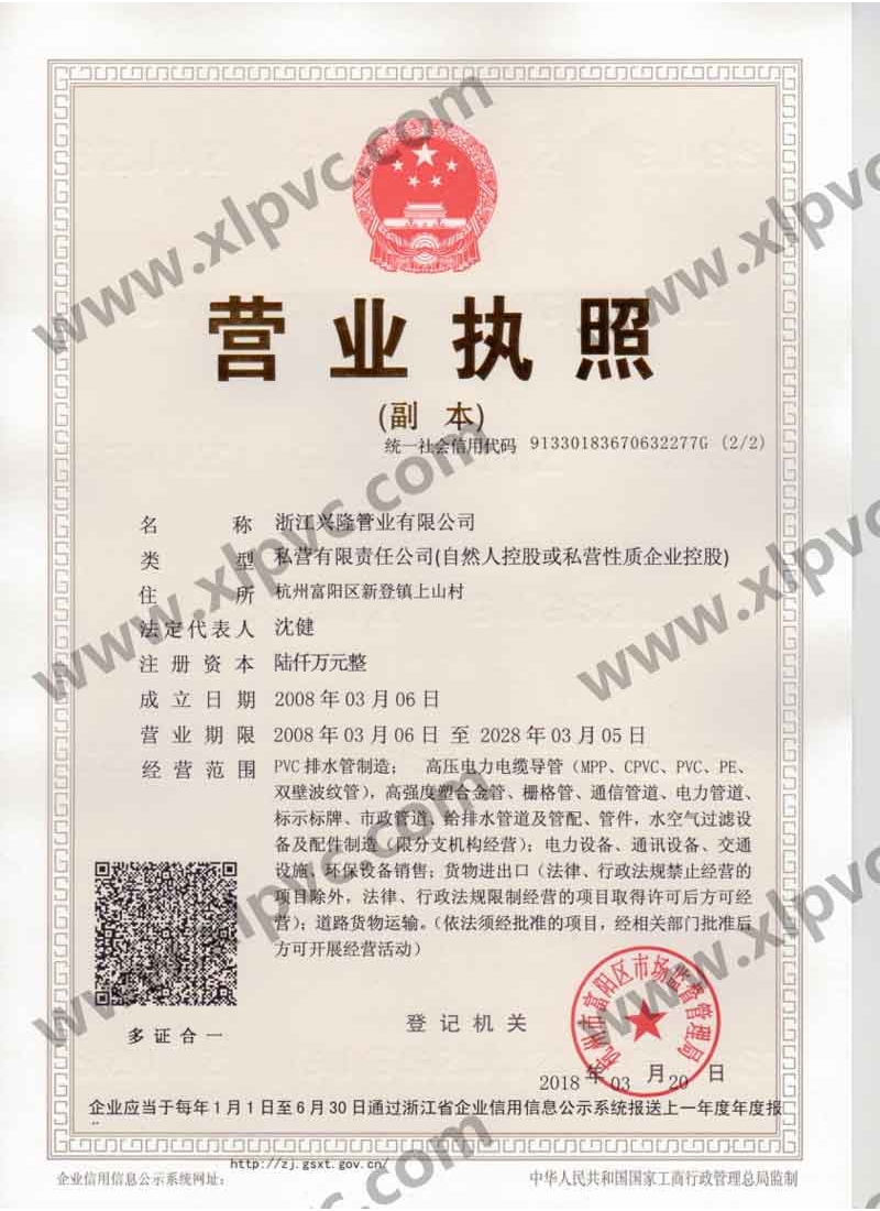 浙江興隆管業(yè)有限公司位于杭州市富陽(yáng)區(qū)(杭州第九新區(qū)),坐落在新登鎮(zhèn),相距杭州僅60公里,水、陸、空交通運(yùn)輸十分便利。浙江興隆管業(yè)有限公司前身為富陽(yáng)興隆塑料制品廠,成立于1992年,2008年改名浙江興隆管業(yè)有限公司,數(shù)十年來,公司一直至力于管道的生產(chǎn),目前公司擁有國(guó)內(nèi)先進(jìn)的CPVC保護(hù)管生產(chǎn)線,HPVC()雙壁波紋管生產(chǎn)線,多孔管生產(chǎn)線,玻璃鋼電纜保護(hù)管生產(chǎn)線、MPP電纜保護(hù)管生產(chǎn)線。生產(chǎn)的主要產(chǎn)品有:CPVC電纜保護(hù)管、MPP電力電纜保護(hù)管(頂管)、高強(qiáng)度塑合金管、HDPE給排水管、HPVC()雙壁波紋管、玻璃鋼電纜保護(hù)管、埋地通信用的PVC-U多孔管、PE直壁管、PVC-U雙壁波紋管、梅花管等,年生產(chǎn)能力達(dá)20000萬(wàn)米。